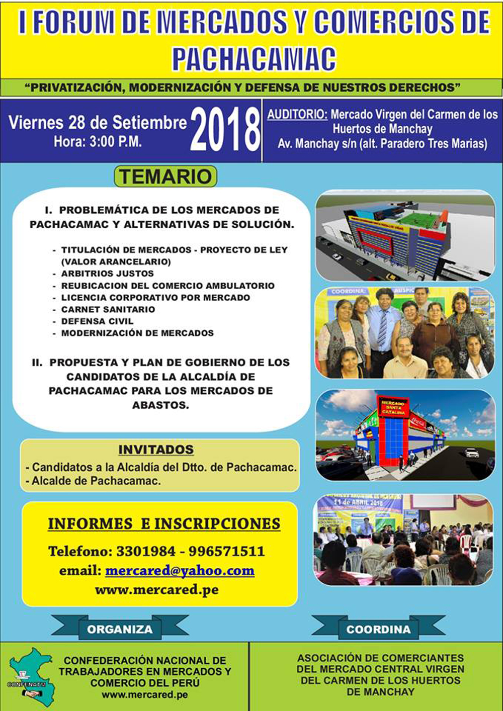 Se realizó con lleno total en el auditorio del mercado Virgen del Carmen de los Huertos de Manchay, con la presencia de los candidatos a la alcadia de Pachacamac.